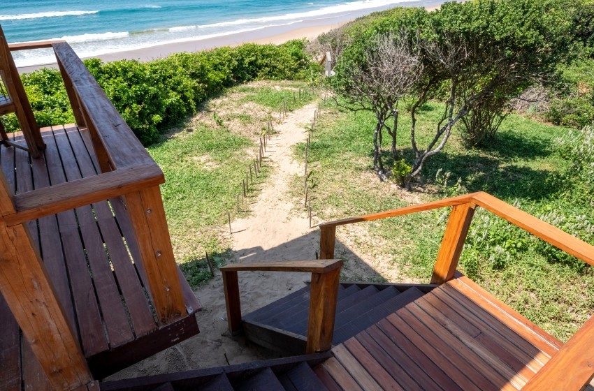 Type: Self-Catering Bedrooms: 4 Capacity: 10 Guests Bathrooms: 4 (en-suite) Features: Private Pool, Sea views, Air Con, Back-Up Generator Aloha 22: Direct Beach Access to Ponta Mamoli's Stunning Shoreline! Aloha 22 is a self-catering house with 4 bedrooms situated on the beach in Ponta Mamoli. This home is a hit among travellers for good reason! With its 4 bedrooms, en-suite bathrooms, pool and direct beach access, it can comfortably accommodate 10 guests. This popular holiday house comprises 4 buildings, one of which houses the kitchen, lounge and dining area, the remaining 3 buildings comprise the 4 bedrooms. Two of the bedrooms are inter-leading. The lounge has a flatscreen Smart TV (use own log-in details to stream your favourite programmes using the Wi-Fi provided. Each of the 4 bedrooms have an en-suite bathroom with shower, ceiling fan, air-con and are accessible from the outside deck. Bed Configuration Bedroom 1 - Queen Size Bed (inter-leading door to bedroom 2) Bedroom 2 - 4 x Single Beds (can be converted to king size beds) Bedroom 3 - Queen Size Bed Bedroom 4 - Queen Size Bed The kitchen is a spacious area and equipped with all the necessities for self-catering, including a fridge/freezer, 4 plate gas hob, oven, ice machine, cutlery, crockery and glassware. The main living area opens onto the deck with a sparkling pool and comfortable pool side recliners. Aloha 22 has a lovely barbeque area and a gazebo overlooking the ocean, the perfect spot for early morning coffee or afternoon sundowners. A 4x4 vehicle is required to access Aloha Beach Estate which is located a mere 40 minutes from the Kosi Bay border.