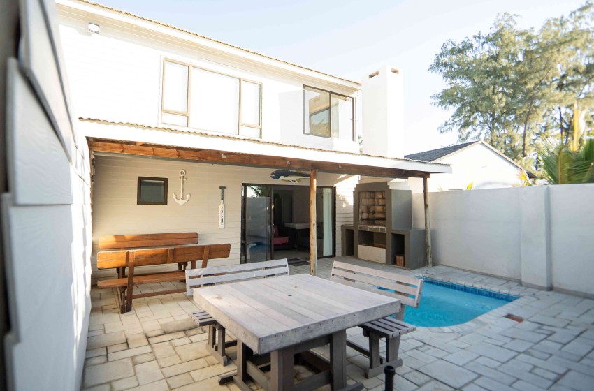 Type: Self-Catering Bedrooms: 3 Capacity: 6 Guests Bathrooms: 2 Features: Air Con, DSTV, Pool, On the Beach, Wi-Fi Barracuda House: It's All About Those Beach Vibes Barracuda House is a 3 bedroom double-storey house situated on Barra Beach, in the popular Barra 5 complex. This gem is tucked away at the back of the property, only a hop and a skip from the ocean. This lovely beach retreat comfortably sleeps 6 guests. An additional two children under 12 years can be accommodated on mattresses at additional cost. The 3 bedrooms are air-conditioned and each has a Super King size bed (which can be moved apart to form 2 x 3/4 beds). The main bedroom with an en-suite bathroom is located downstairs, the other 2 bedrooms, with fabulous sea views, are upstairs and share a bathroom. The cosy living area comprises an open plan kitchen and lounge area with DSTV. Glass sliders lead to the outside patio. Here, you'll find a splash pool, a charcoal braai (that's South African BBQ for you!), and outdoor dining furniture for those unforgettable beachfront feasts. Stay connected with Wi-Fi service and rest easy knowing that the daily cleaning service at Barracuda House keeps everything spick and span. Enjoy the coastal charm of Barra, take leisurely strolls along the silky white sands, cool off with a refreshing dip in the crystal-clear ocean and quench your thirst with an ice cold 2M (great tasting local beer) At Barracuda House, it's all about those beach vibes and creating unforgettable memories by the sea.