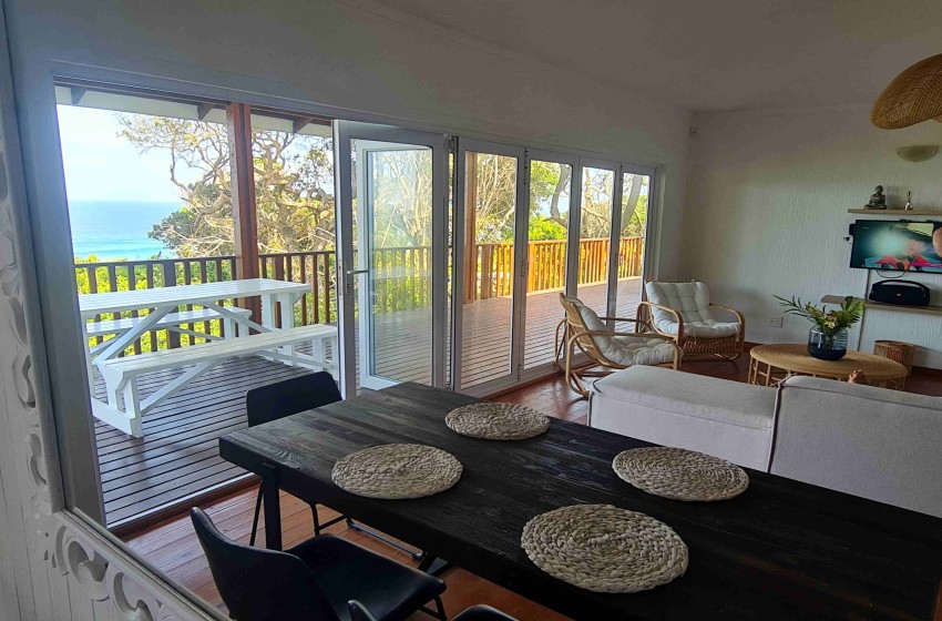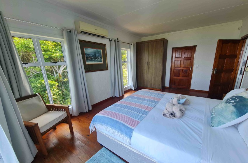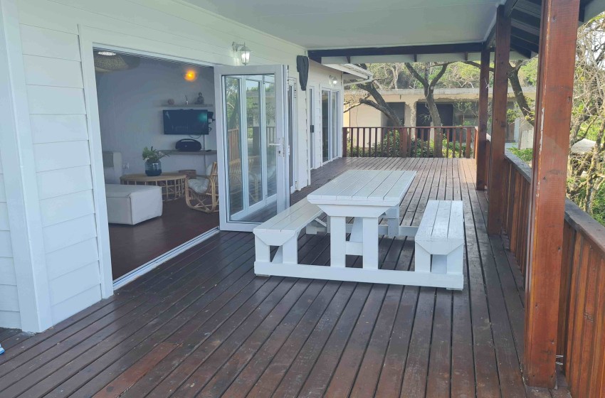 Type: Self-Catering Bedrooms: 3 Capacity: 6 People Bathrooms: 3 Features: Air-Con, Cleaning Service, Sea Views, Beach Access . Dream Beach Ponta House 8: Midway Between Do Ouro and Malongane Dream Beach Ponta House 8 is situated half-way between Ponta do Ouro and Ponta Malongane. Located on a large, wooded estate, this Ponta holiday house is situated on the upper section of the property with sea views as well as direct beach access via a 100m communal pathway. A spacious undercover deck with a bench style dining table, offers the ideal setting to unwind and soak up balmy evenings - best enjoyed with a plate of fresh, juicy prawns. Inside, the home features a kitchen, dining area and a comfortable lounge with a TV connected to Zap satellite (a digital satellite television service that operates primarily in Mozambique and comprises mainly Portuguese content). House 8 has 3 bedrooms and 3 bathrooms, two of which are en-suite. The 2 main en-suite bedrooms have air-con, the 3rd bedroom is cooled by a ceiling fan. Bed Configuration House 8 Bedroom 1 - Queen size bed Bedroom 2 - 2 x single beds Bedroom 3 - 2 x single beds You’ll find the kitchen stocked with all the essentials—cutlery, crockery, and pots and pans—while a cheerful cleaner ensures the house stays neat and tidy during your stay. All guests staying at Dream Beach Lodge can enjoy the pool and braai lapa on the estate. Perfect for six guests, Dream Beach Ponta House 8 provides a comfortable base for your Mozambique getaway. Designed for easy living, it’s a great choice if you value simplicity, comfort and beachside relaxation - over high end gadgets and luxuries. The popular seaside village of Ponta is home to a variety of restaurants, pubs and operators who provide an array of beach activities - from scuba diving to swimming with dolphins. A colourful market sells a variety of sarongs, seasonal fruits & vegetables, seafood, airtime, local bread and the famous (but lethal) Tipo Tinto Rum!