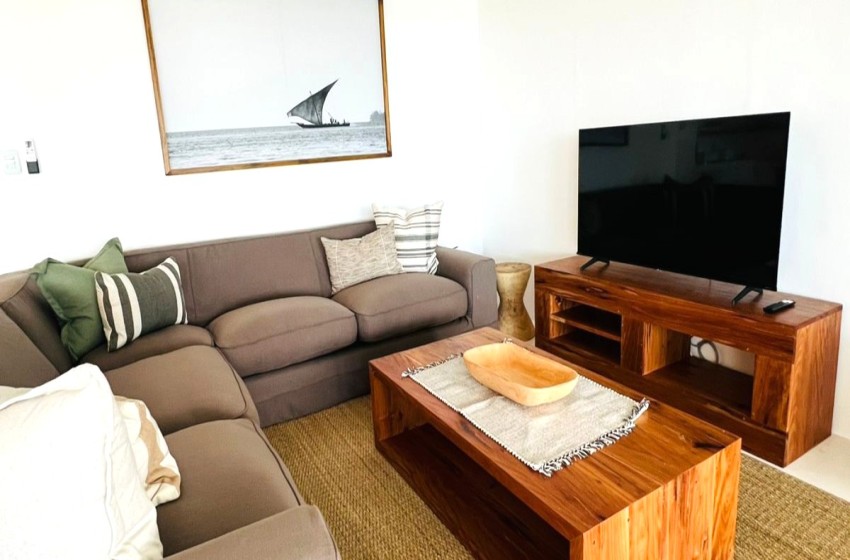 Type: Self-Catering Bedrooms: 6 Bathrooms: 6 (en-suite) Capacity: 12 People Facilities: On The Beach, Air Con, Splash Pool, Smart TV, Wi-Fi Manta House: Carefree Beach Living Manta House in Barra is located within a new, upmarket development on the main Barra Beach. Set alongside warm, turquoise waters, this idyllic setting offers the ultimate coastal holiday escape. Situated upstairs, above Whale House, Manta House is an identical replica, offering the perfect solution for larger groups requiring additional accommodation. This stylish beach villa can accommodate a total of 12 people in 6 spacious bedrooms. Each bedroom at Manta House is air conditioned and features a king size bed (can be converted to 2 x twin beds), bath towels and en-suite bathrooms with showers (one of which has a bath and shower). Designed for carefree beach living, the open-plan areas include an air-conditioned lounge with SMART TV (log in with your own details), a fully equipped kitchen and a patio just steps from the shoreline. Outside, enjoy long, lazy meals at the 12-seater table, unwind on comfortable sofas, stretch out on the sun beds and fire up the built-in charcoal braai for some freshly grilled prawns. Kitchen/Catering Equipment 2 Fridges Deepfreeze Smeg Kettle Smeg Toaster Microwave Gas Stove & Oven Gas Braai Whether you’re soaking up the sun, gazing out at the endless ocean views or enjoying a leisurely meal outdoors, Manta House provides the perfect setting to switch off and unwind. It’s a tropical coastal getaway where comfort, space and seaside charm come together beautifully.
