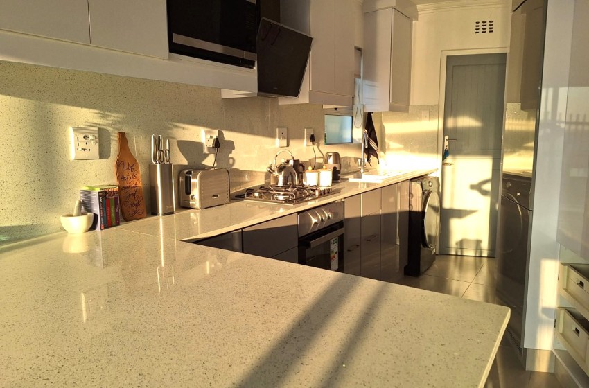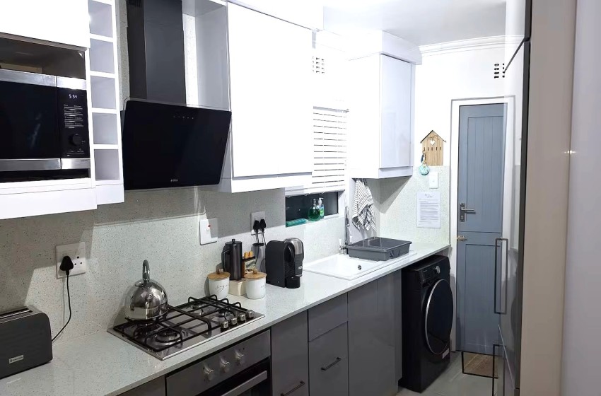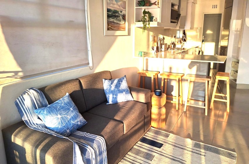 Type: Self-Catering Bedrooms: 1 Bathrooms: 1 Capacity: 4 (2 adults and 2 children under 12 years on sleeper couch) Features: Sea Views, Direct Beach Access, Air-Con, Complex Pool, Wi-Fi Pearl Rock Ballito Beach Cottage: Cosy Couples Cottage Pearl Rock is a cosy beachfront unit located in Shaka’s Rock, Ballito, perched on rocky outcrops above the tranquil blue ocean. This stylishly decorated self-catering beach cottage features an air-conditioned bedroom with a queen bed, a full bathroom, and an open-plan living area with a sleeper couch and Smart TV in the lounge. The fully equipped kitchen includes a washing machine for added convenience. The living area opens onto a spacious patio overlooking the coastline, furnished with a dining table and chairs — the perfect spot to relax and enjoy the beautiful coastline. Kitchen Catering/Equipment Gas Stove & Electric Oven Microwave Oven Fridge/Freezer Kettle & Toaster Nespresso Coffee Machine Gas Braai Washing Machine Crockery/Cutlery/Utensils Pots/Pans Glassware & Mugs A serving counter with a gas Weber braai is located on the patio, ideal for relaxed outdoor meals. A storage bench provides hammocks for lazy afternoons, as well as a beach umbrella and toys for children to build sandcastles by the sea. The unit has direct access to the beach and guests are welcome to enjoy the communal pool. Pearl Rock Ballito Beach Cottage offers a relaxed coastal escape in one of Ballito’s most loved seaside spots. It’s the perfect setting for couples or small families looking to enjoy the beauty of the North Coast.