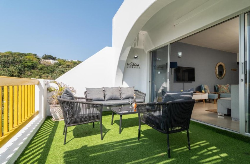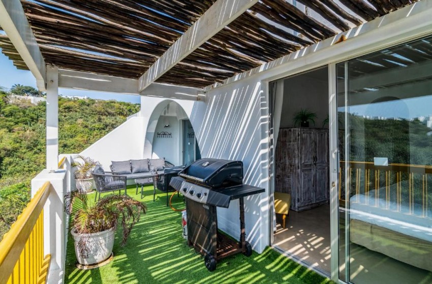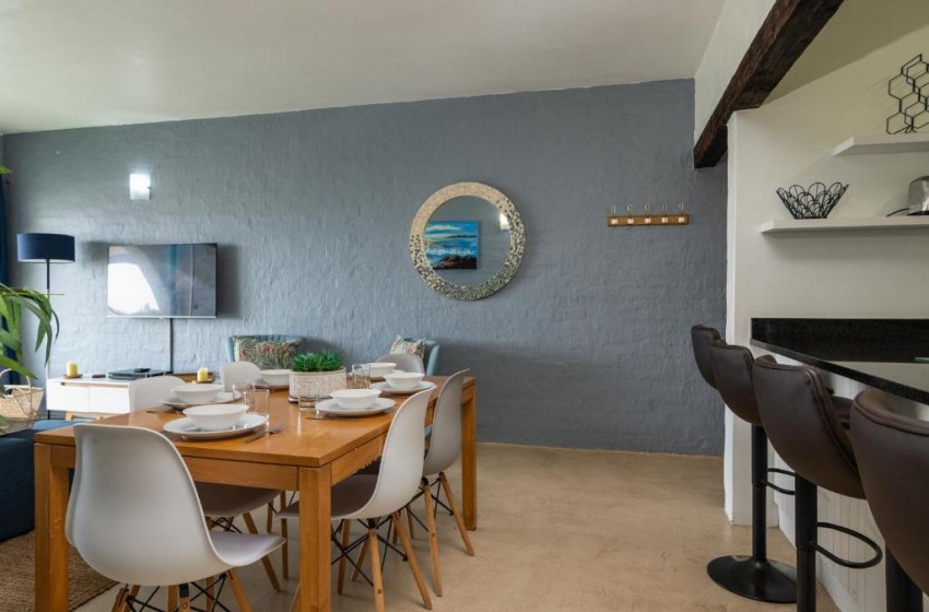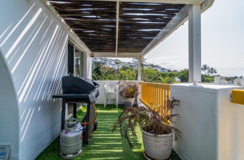 Type: Apartment Capacity: 6 Guests Bedrooms: 3 en-suite Bathrooms: 2 Features: Swimming pools, Tennis courts, Playground, Walks, Gas braai, TV, Wi-Fi Discover the Mediterranean Magic of Santorini Kallisti 21 in Ballito Santorini Kallist 21 is an idyllic haven for families seeking the ideal beach holiday destination on the KZN North Coast. This beachside Greek inspired estate boasts an array of amenities that will delight both young and old, including; six swimming pools, a whale and dolphin viewing deck, kiddies playground, tennis courts, nature walks and direct access to two separate beaches. Santorini Kallisti 21 is a beautifully furnished modern apartment, featuring three en-suite bedrooms and two bathrooms, designed to ensure your comfort and relaxation. The main bedroom has a full bathroom with a shower, while the 2nd bathoom has a bath tub. Bedroom Configuration; Bedroom 1 - King Size Bed with en-suite bathroom Bedroom 2 - Queen Size Bed Bedroom 3 - 2 x Single Bunk Beds Situated on the 2nd floor, the apartment is accessible via a stairwell leading up from the parking area. The open-plan living space offers a fully equipped kitchen, overlooking the inviting lounge and dining area, accommodating six guests comfortably. Beyond is a set of doors open onto a spacious balcony with distant sea views. For those who love to braai, there is a gas braai on the balcony to complement your afternoon sundowners. Additional features include a Smart TV and uncapped Wi-Fi, ensuring you stay connected, and a lock-up garage for your vehicle, with extra unallocated outdoor parking spaces available for your guests. Santorini Kallisti 21 invites you to experience the allure of the Mediterranean right here on the KZN North Coast. Book your stay today and embark on a journey to a Greek-inspired paradise unlike any other. Your dream Mediterranean getaway awaits!