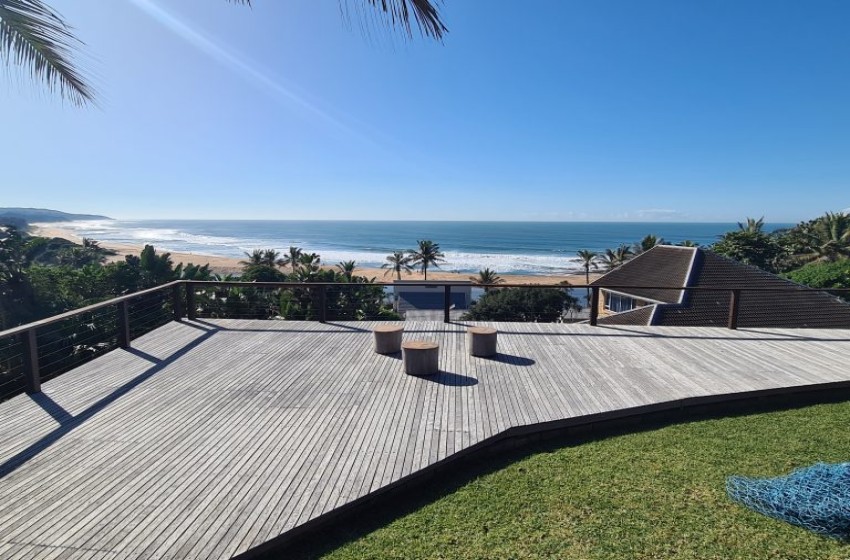 Type: Self-Catering House Bedrooms:4 Capacity: 8 Guests Bathrooms:4 Features: Pool, Ocean & Lagoon Views, Wi-Fi, Walk to Beach, Pet Friendly by Arrangement The Ark: Savour the Serenity of Zinkwazi The Ark in Zinkwazi is a remarkable 8 sleeper beach house which harmoniously merges indoor and outdoor areas and offering captivating vistas of the ocean, lagoon and surrounding coastal vegetation. Perfectly suited, this self-catering gem features 4 bedrooms, each with splendid views of both the pool and the ocean. Each bedroom has glass stacking doors opening onto the pool deck. The main bedroom includes a luxurious en-suite bathroom featuring a bath and shower, while the remaining bedrooms share a second bathroom equipped with a bath and shower, in addition to a convenient guest loo. Bed Configuration Bedroom 1 - Queen Size XL Bed, en-suite bathroom Bedroom 2 - Queen Size XL Bed Bedroom 3 - Queen Size XL Bed Bedroom 4 -Queen Size XL Bed Feel the holiday vibe at The Ark as you slide open the large doors connecting the lounge to the outdoor space. A beautiful pool area and stunning ocean vistas unfold, seamlessly blending indoor and outdoor spaces. The kitchen is a culinary paradise, equipped with a dishwasher, microwave, gas hob and oven, large side-by-side fridge/freezer, chest freezer and all the necessary cutlery & crockery required for 8 guests. Your peace of mind is paramount. Security measures include beams, armed response and gated premises thus ensuring your comfortable, safe and secure stay. To elevate your experience, The Ark provides all necessary linens towels, including beach towels, plus two garages and ample parking. Additionally, home comforts, Wi-Fi, braai facilities and DSTV are provided. Escape to The Ark and revel in a tranquil beachside experience. Unwind on the large veranda, enjoy the sea breeze, and savour the serenity of Zinkwazi – an inviting escape for a relaxed and memorable holiday.