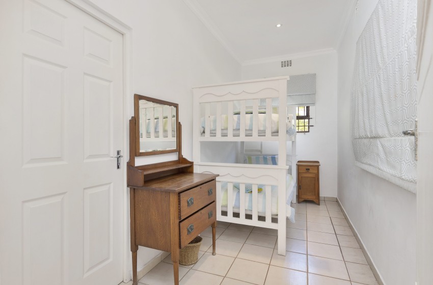 Type: Self-Catering Bedrooms: 5 Bathrooms: 3.5 Capacity: 10 (8 adults & 2 children under 10 years) Features: Sea and Lagoon Views, Wi-Fi, DSTV The Zinkwazi Beach House – The Best Location in Zinkwazi! The Zinkwazi Beach House is set on a prime beachfront location with sweeping views of both the lagoon and the ocean - one of the most superb locations in Zinkwazi. The Beach House comfortably accommodates up to 10 guests (maximum 8 adults and 2 children under 10). There are five bedrooms, all with ceiling fans, cupboards and hangers. Two of the bedrooms are en-suite, the remaining 3 bedrooms share a spacious family bathroom (a guest loo is also provided). Bed Configuration Bedroom 1 - King size bed Bedroom 2 - 2 x Single Beds Bedroom 3 - 2 x Single Beds Bedroom 4 - 1 x Bunk Bed Bedroom 5 - 2 x Single beds The home’s interiors are bright and airy, featuring open-plan living spaces that flow seamlessly between the sunroom, lounge and dining area. At the front, a shaded veranda with comfortable outdoor seating and a built-in braai sets the scene for long, lazy afternoons of alfresco dining and quality time with family and friends. The fully equipped kitchen makes self-catering a breeze, and also includes a dishwasher, washing machine and tumble dryer. Housekeeping is provided by the on-site housekeeper, ensuring a stress-free stay. Kitchen/Catering Equipment Fridge Chest Freezer Oven & Hob Microwave Dishwasher Cutlery/Crockery Washing Machine Tumble Dryer The Zinkwazi Beach House is walled and gated on two sides and secured with an alarm, beams and armed response. Parking is plentiful, with two lock-up garages and additional open parking available. With its unbeatable beachfront position, modern comforts and welcoming atmosphere, The Zinkwazi Beach House truly lives up to its name as one of Zinkwazi’s best holiday homes.