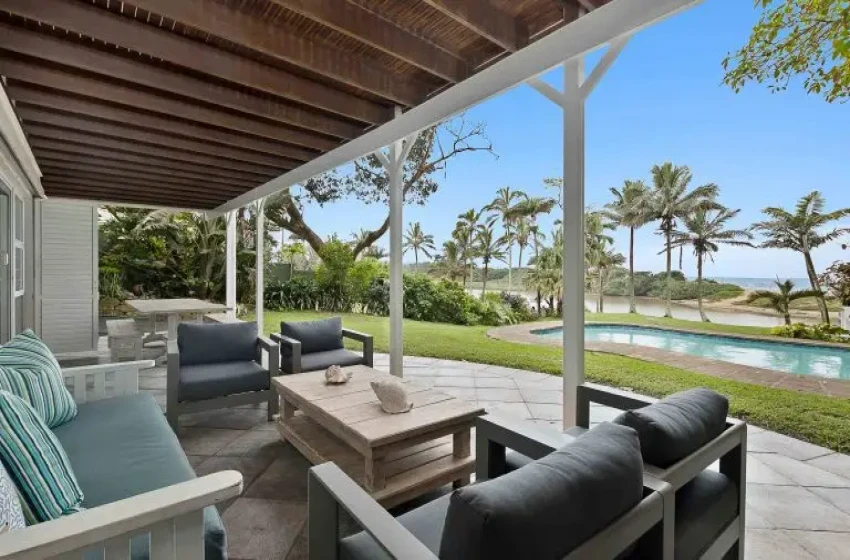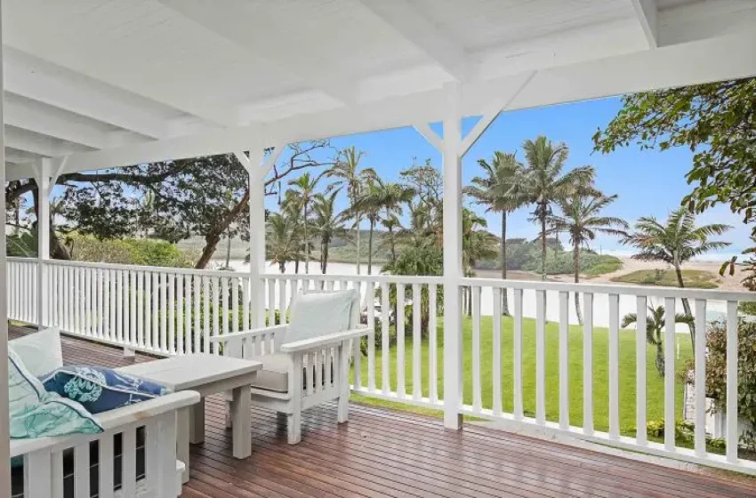 Type: Self-Catering House Bedrooms: 4 + 1 (Flat) Capacity: 14 Guests (8 adults and 6 children under 15 years) Bathrooms: 4 Features: Solar Inverter, Wi-Fi, Pool, DSTV, Air-Con, Lagoon & Beach Views Vuyatela: A Grand Plantation-style Beach House in Zinkwazi Vuyatela is a magnificent plantation-style beachfront villa, nestled along the tranquil lagoon with direct access to the pristine beach. This captivating house offers mesmerizing views of the sea and lagoon from both the upper and lower shaded verandas, each elegantly furnished with comfortable outdoor seating. Nestled in the enchanting coastal town of Zinkwazi, just 30 minutes North of Salt Rock, Vuyatela is a favourite among holidaymakers, particularly families seeking the ultimate retreat. This exceptional beach house boasts awe-inspiring sea and lagoon views and features four bedrooms with an additional separate four-sleeper flatlet. The first and second bedrooms have en-suite showers, the 3rd & 4th bedrooms share a bathroom with a bath and shower. For larger groups, the flatlet offers two single beds and two bunk beds, making it an ideal choice for couples with young children or teenagers. Both the bedrooms and the flatlet feature air-conditioning, ceiling fans and high-quality linen. Access to the expansive upper veranda from all bedrooms creates a seamless indoor-outdoor experience. Bed Configuration: Bedroom 1: King Size Bed (en-suite shower) Bedroom 2: King Size Bed (en-suite shower) Bedroom 3: Double Bed (bathroom shared with bedroom 4) Bedroom 4: 2 x Single Beds Flatlet: 2 x Single Beds & 2 x Bunk Beds The lower level of the house showcases an inviting open-plan lounge, a TV lounge, spacious dining room and a fully equipped kitchen, complete with a laundry area and a convenient guest restroom. The well-appointed kitchen boasts all the necessary cutlery, crockery and amenities you need for a relaxing holiday. Vuyatela offers a range of additional features to enhance your stay, including Wi-Fi, DSTV and convenient braai facilities, perfect for a memorable beachfront barbecue. For added security, the house is equipped with an alarm system linked to an armed response team. At the front of the property, you'll find a private jetty, ideal for launching your boat onto the lagoon when water levels permit. The house also features a pool (no pool net). Vuyatela is renowned for its breathtaking views, sprawling green lawns and its warm and welcoming staff, who consistently earn glowing reviews from guests throughout the year. Discover coastal luxury on the Zinkwazi lagoon - book your stay at Vuyatela now and indulge in a beachside getaway like no other!