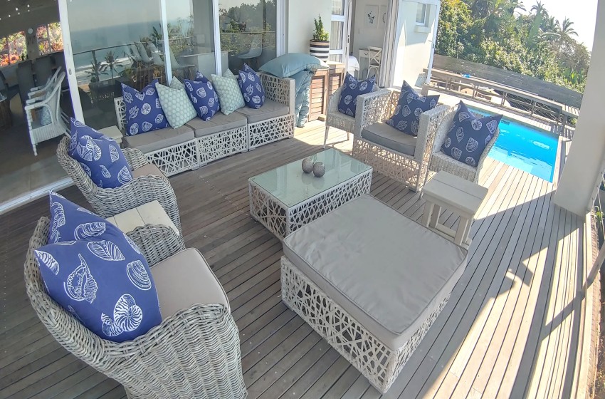 Type: Self-Catering Bedrooms: 5 Bathrooms: 5 en-suite Capacity: 10 Features: Swimming Pool, Sea Views, Wi-Fi, Air-Conditioning Yorkie's Rest Zinkwazi - Your Beach Break, Perfected Yorkie's Rest Zinkwazi is a contemporary 10 sleeper upmarket holiday home which combines comfort with breathtaking views of the ocean and lagoon. Whether you’re relaxing on the spacious veranda, cooling off in the sparkling pool, or watching dolphins and whales pass by, this home is the ideal setting for a coastal escape. Accommodation comprises 5 bedrooms - Bedroom 1 has a king sized bed with air-conditioning, en-suite bathroom and ocean views. Each of the remaining 4 bedrooms each have twin beds (pushed together with king/double sheets), en-suite bathrooms with showers and ceiling fans or air-conditioning. The kitchen at Yorkie's Rest is fully equipped with gas hob & electric oven, microwave, large fridge/freezer, dishwasher and all crockery and cutlery is provided. Enjoy al-fresco dining and sunset cocktails on the veranda, or head indoors where the open-plan layout creates the perfect space for family and friends. The living spaces include a lounge, dining room, bar, guest loo, fully equipped kitchen with scullery and a separate TV lounge. For a touch of fun, there’s also a pool table in the entertainment area. Additional features at Yorkie's Rest include Wi-Fi, DSTV, daily housekeeping, silent generator, braai facilities and a gated entrance with alarm system and armed response. The house is conveniently located close to the main beach entrance – just a short walk, with no need to drive. Every detail has been designed for comfort, relaxation and family fun — all just steps from Zinkwazi’s pristine beach.