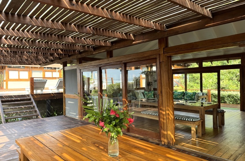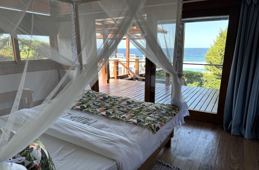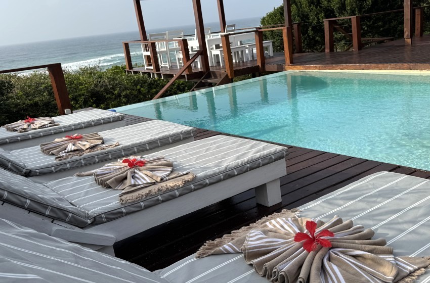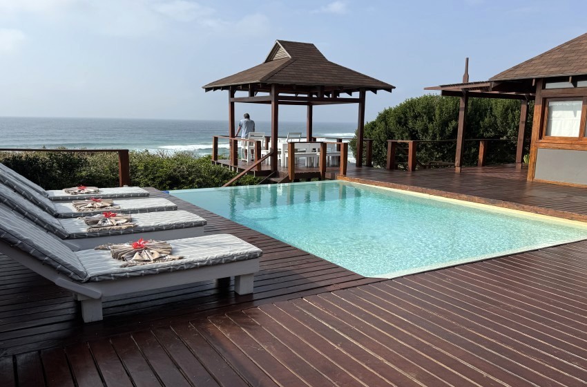 Type: Self-Catering Bedrooms: 4 Capacity: 10 Guests Bathrooms: 4 (en-suite) Features: Private Pool, Sea views, Air Con, Back-Up Generator Aloha 22: Direct Beach Access to Ponta Mamoli's Stunning Shoreline! Aloha 22 is a self-catering house with 4 bedrooms situated on the beach in Ponta Mamoli. This home is a hit among travellers for good reason! With its 4 bedrooms, en-suite bathrooms, pool and direct beach access, it can comfortably accommodate 10 guests. This popular holiday house comprises 4 buildings, one of which houses the kitchen, lounge and dining area, the remaining 3 buildings comprise the 4 bedrooms. Two of the bedrooms are inter-leading. The lounge has a flatscreen Smart TV (use own log-in details to stream your favourite programmes using the Wi-Fi provided. Each of the 4 bedrooms have an en-suite bathroom with shower, ceiling fan, air-con and are accessible from the outside deck. Bed Configuration Bedroom 1 - Queen Size Bed (inter-leading door to bedroom 2) Bedroom 2 - 4 x Single Beds (can be converted to king size beds) Bedroom 3 - Queen Size Bed Bedroom 4 - Queen Size Bed The kitchen is a spacious area and equipped with all the necessities for self-catering, including a fridge/freezer, 4 plate gas hob, oven, ice machine, cutlery, crockery and glassware. The main living area opens onto the deck with a sparkling pool and comfortable pool side recliners. Aloha 22 has a lovely barbeque area and a gazebo overlooking the ocean, the perfect spot for early morning coffee or afternoon sundowners. A 4x4 vehicle is required to access Aloha Beach Estate which is located a mere 40 minutes from the Kosi Bay border.