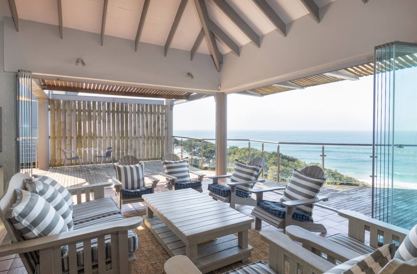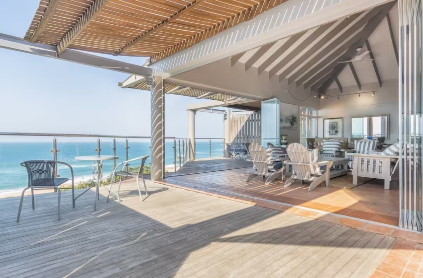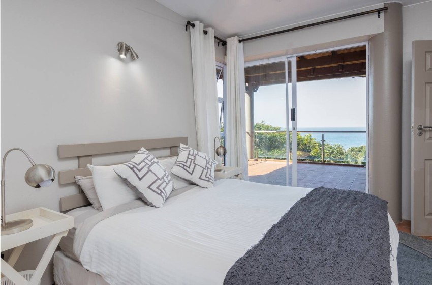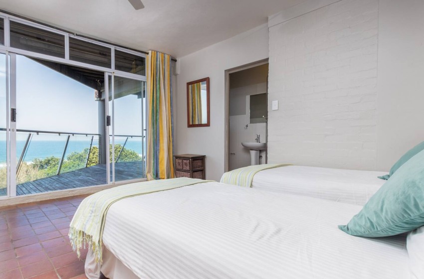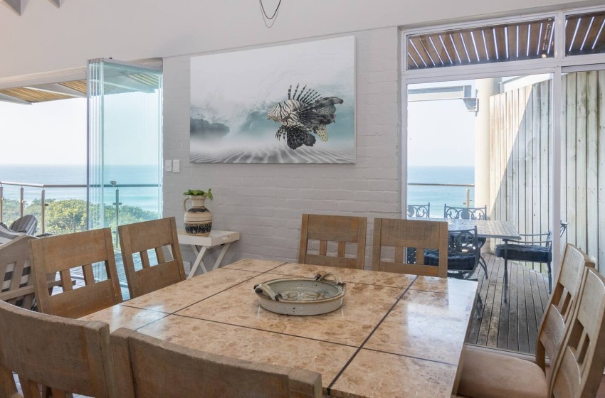 Type: Self-Catering Bedrooms: 5 Bathrooms: 5 (en-suite) Capacity: 10 Features: Sea Views, Swimming Pool, Wi-Fi, DSTV Dolphin View - Lose Yourself in the Endless Ocean Views Perched above Zinkwazi’s golden shoreline, Dolphin View is a spacious, upmarket beach house designed for effortless coastal living. Expansive glass doors frame uninterrupted ocean views while multiple private decks and verandas invite you to unwind, read a book, or simply lose yourself in the sights and sounds of the endless ocean ahead. With direct access to a wide beach dotted with rock pools for children to explore at low tide, Dolphin View is perfect for families and friends who love both relaxation and adventure. Five generous bedrooms, each with its own bathroom, sleep 10 guests with ease. Bed Configuration Bedroom 1 - Queen bed Bedroom 2 - 2 x Single Beds Bedroom 3 - 1 x Double Bed Bedroom 4 - 1 x Queen Bed Bedroom 5 - 2 x Single beds Seamless indoor-outdoor flow sets the tone. Dolphin View offers three inviting lounges, a stylish pool room with its own seating area, a guest loo, elegant dining spaces (both indoor and al fresco) and a fully equipped modern kitchen.