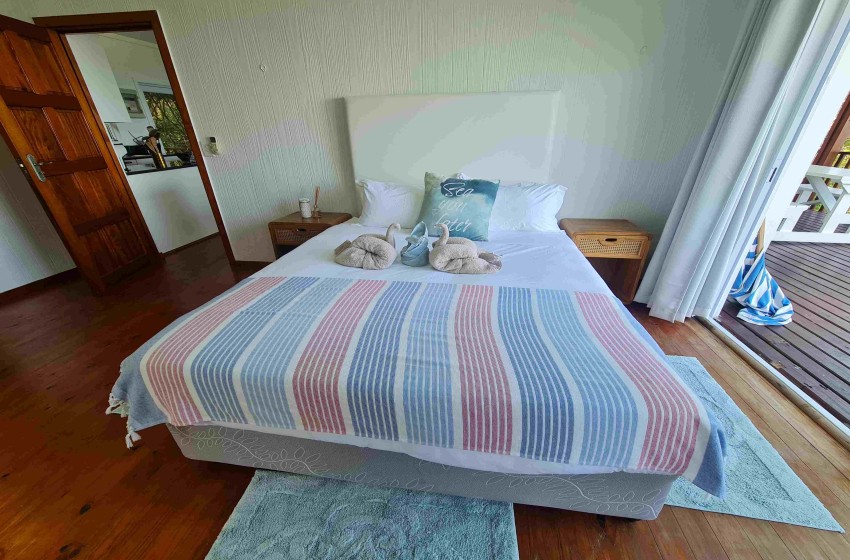 Type: Self-Catering Bedrooms: 3 Capacity: 6 People Bathrooms: 3 Features: Air-Con, Cleaning Service, Sea Views, Beach Access . Dream Beach Ponta House 8: Midway Between Do Ouro and Malongane Dream Beach Ponta House 8 is situated half-way between Ponta do Ouro and Ponta Malongane. Located on a large, wooded estate, this Ponta holiday house is situated on the upper section of the property with sea views as well as direct beach access via a 100m communal pathway. A spacious undercover deck with a bench style dining table, offers the ideal setting to unwind and soak up balmy evenings - best enjoyed with a plate of fresh, juicy prawns. Inside, the home features a kitchen, dining area and a comfortable lounge with a TV connected to Zap satellite (a digital satellite television service that operates primarily in Mozambique and comprises mainly Portuguese content). House 8 has 3 bedrooms and 3 bathrooms, two of which are en-suite. The 2 main en-suite bedrooms have air-con, the 3rd bedroom is cooled by a ceiling fan. Bed Configuration House 8 Bedroom 1 - Queen size bed Bedroom 2 - 2 x single beds Bedroom 3 - 2 x single beds You’ll find the kitchen stocked with all the essentials—cutlery, crockery, and pots and pans—while a cheerful cleaner ensures the house stays neat and tidy during your stay. All guests staying at Dream Beach Lodge can enjoy the pool and braai lapa on the estate. Perfect for six guests, Dream Beach Ponta House 8 provides a comfortable base for your Mozambique getaway. Designed for easy living, it’s a great choice if you value simplicity, comfort and beachside relaxation - over high end gadgets and luxuries. The popular seaside village of Ponta is home to a variety of restaurants, pubs and operators who provide an array of beach activities - from scuba diving to swimming with dolphins. A colourful market sells a variety of sarongs, seasonal fruits & vegetables, seafood, airtime, local bread and the famous (but lethal) Tipo Tinto Rum!