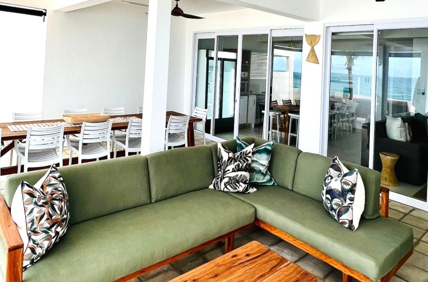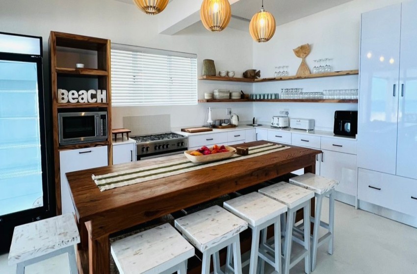 Type: Self-Catering Bedrooms: 6 Bathrooms: 6 (en-suite) Capacity: 12 People Facilities: On The Beach, Air Con, Splash Pool, Smart TV, Wi-Fi Manta House: Carefree Beach Living Manta House in Barra is located within a new, upmarket development on the main Barra Beach. Set alongside warm, turquoise waters, this idyllic setting offers the ultimate coastal holiday escape. Situated upstairs, above Whale House, Manta House is an identical replica, offering the perfect solution for larger groups requiring additional accommodation. This stylish beach villa can accommodate a total of 12 people in 6 spacious bedrooms. Each bedroom at Manta House is air conditioned and features a king size bed (can be converted to 2 x twin beds), bath towels and en-suite bathrooms with showers (one of which has a bath and shower). Designed for carefree beach living, the open-plan areas include an air-conditioned lounge with SMART TV (log in with your own details), a fully equipped kitchen and a patio just steps from the shoreline. Outside, enjoy long, lazy meals at the 12-seater table, unwind on comfortable sofas, stretch out on the sun beds and fire up the built-in charcoal braai for some freshly grilled prawns. Kitchen/Catering Equipment 2 Fridges Deepfreeze Smeg Kettle Smeg Toaster Microwave Gas Stove & Oven Gas Braai Whether you’re soaking up the sun, gazing out at the endless ocean views or enjoying a leisurely meal outdoors, Manta House provides the perfect setting to switch off and unwind. It’s a tropical coastal getaway where comfort, space and seaside charm come together beautifully.
