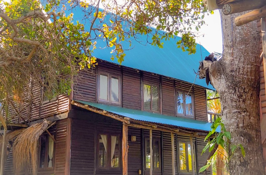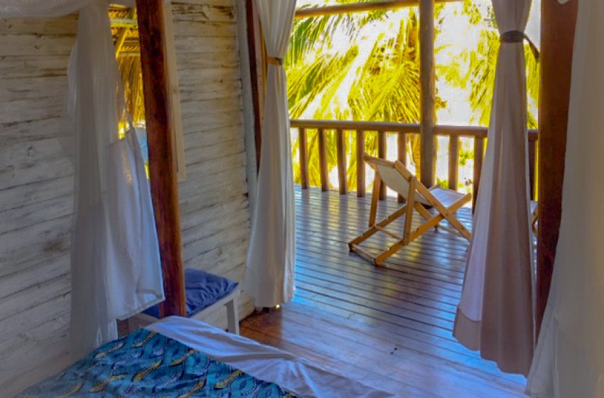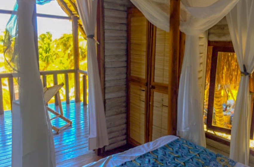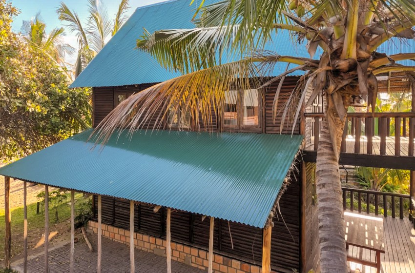 Type: Self-Catering Bedrooms: 3 Capacity: 6 Guests Bathrooms: 2 Features: Housekeeping, Braai Facilities Montanha Lodge House 8: Wooden Charm, Wallet-Friendly! Montanha Lodge House 8 is a self-catering house in Barra which is situated amongst the tropical coconut palms near the lighthouse in Barra, Inhambane. This double storey self-catering house is constructed from wood and offers affordable, comfortable accommodation for 6 guests in 3 bedrooms. The upstairs section of Montanha Lodge 8 houses 2 bedrooms, a bathroom (with bath), small sitting area and an undercover deck. The downstairs section has the 3rd bedroom, bathroom with shower, kitchen, lounge and a deck with dining table. Bed Configuration Bedroom 1 – Double Bed Bedroom 2 – Double Bed Bedroom 3 – Two Single beds Montanha Lodge House 8 does not have sea views but is situated a short 5 minute walk to the beach. The units are serviced daily and have borehole water, gas and 24 hour electricity. Local vendors visit the lodge daily with a supply of produce and curios of offer – these range from fresh fruits of the sea (prawns, crayfish, fish and langoustine) as well as freshly baked local bread and seasonal fruits and vegetables, sarongs and artwork.