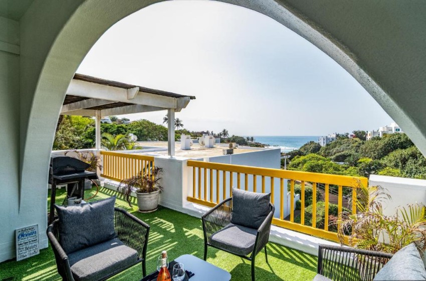 Type: Apartment Capacity: 6 Guests Bedrooms: 3 en-suite Bathrooms: 2 Features: Swimming pools, Tennis courts, Playground, Walks, Gas braai, TV, Wi-Fi Discover the Mediterranean Magic of Santorini Kallisti 21 in Ballito Santorini Kallist 21 is an idyllic haven for families seeking the ideal beach holiday destination on the KZN North Coast. This beachside Greek inspired estate boasts an array of amenities that will delight both young and old, including; six swimming pools, a whale and dolphin viewing deck, kiddies playground, tennis courts, nature walks and direct access to two separate beaches. Santorini Kallisti 21 is a beautifully furnished modern apartment, featuring three en-suite bedrooms and two bathrooms, designed to ensure your comfort and relaxation. The main bedroom has a full bathroom with a shower, while the 2nd bathoom has a bath tub. Bedroom Configuration; Bedroom 1 - King Size Bed with en-suite bathroom Bedroom 2 - Queen Size Bed Bedroom 3 - 2 x Single Bunk Beds Situated on the 2nd floor, the apartment is accessible via a stairwell leading up from the parking area. The open-plan living space offers a fully equipped kitchen, overlooking the inviting lounge and dining area, accommodating six guests comfortably. Beyond is a set of doors open onto a spacious balcony with distant sea views. For those who love to braai, there is a gas braai on the balcony to complement your afternoon sundowners. Additional features include a Smart TV and uncapped Wi-Fi, ensuring you stay connected, and a lock-up garage for your vehicle, with extra unallocated outdoor parking spaces available for your guests. Santorini Kallisti 21 invites you to experience the allure of the Mediterranean right here on the KZN North Coast. Book your stay today and embark on a journey to a Greek-inspired paradise unlike any other. Your dream Mediterranean getaway awaits!